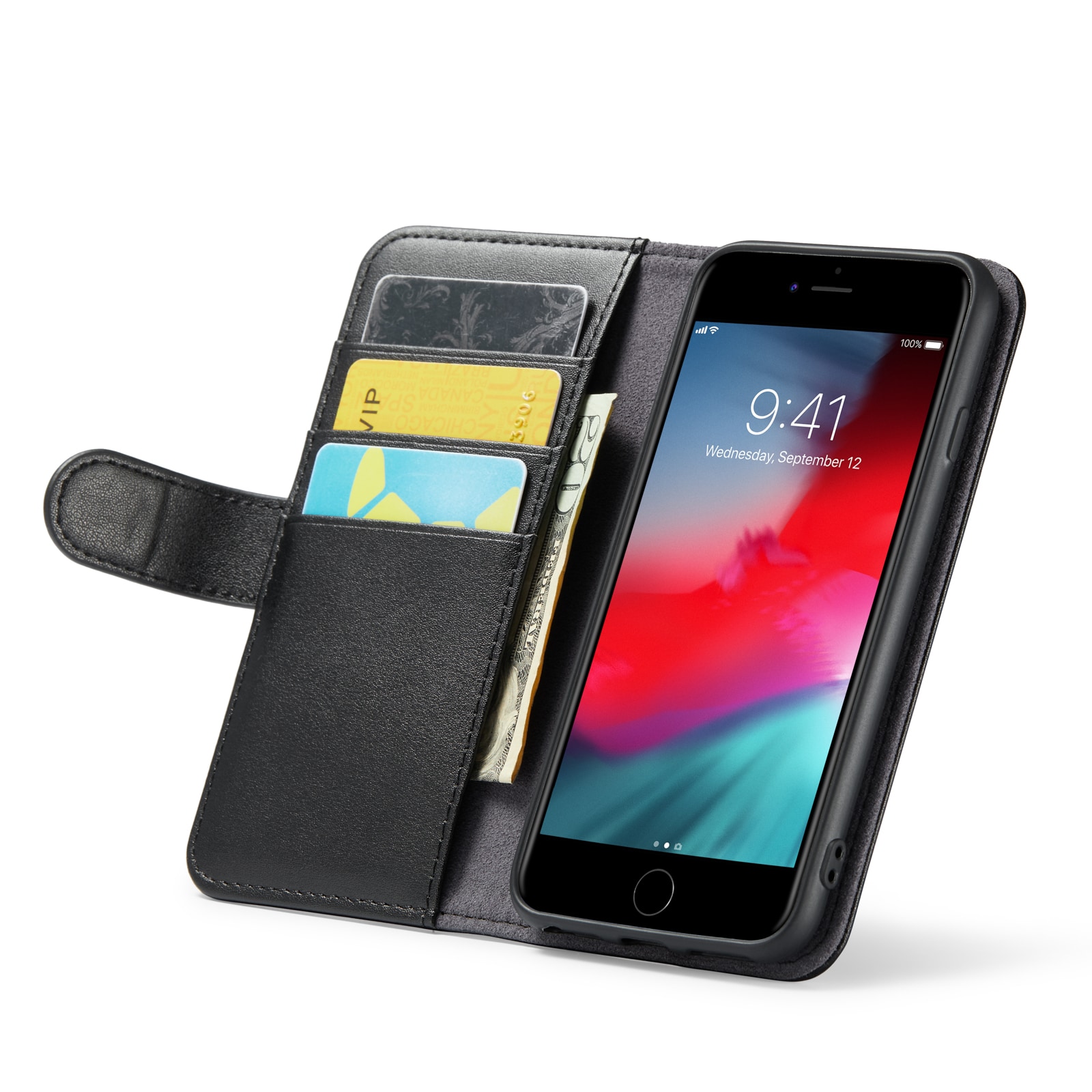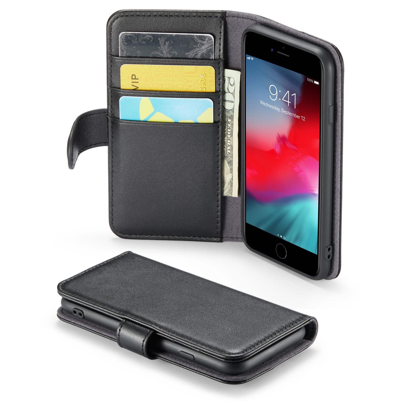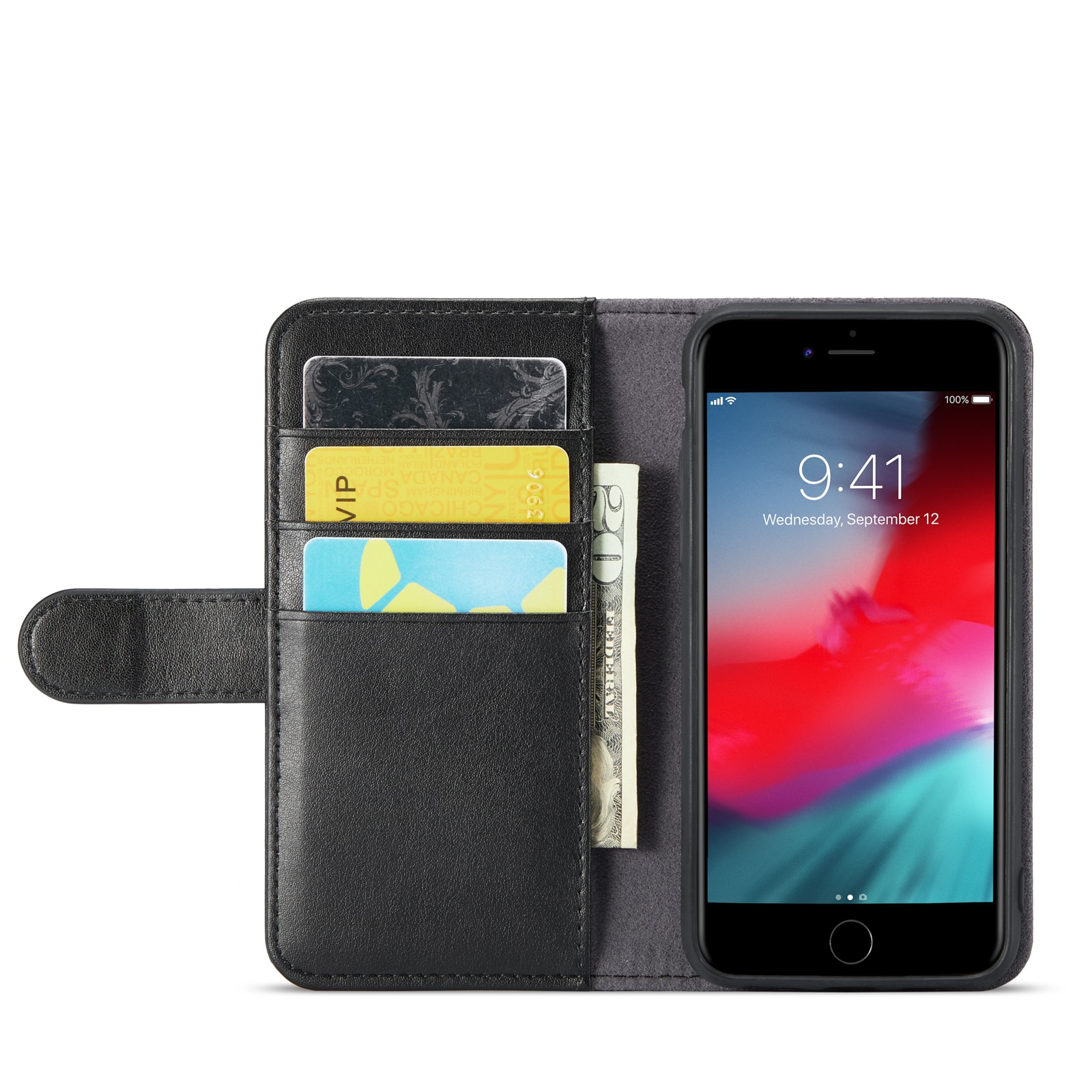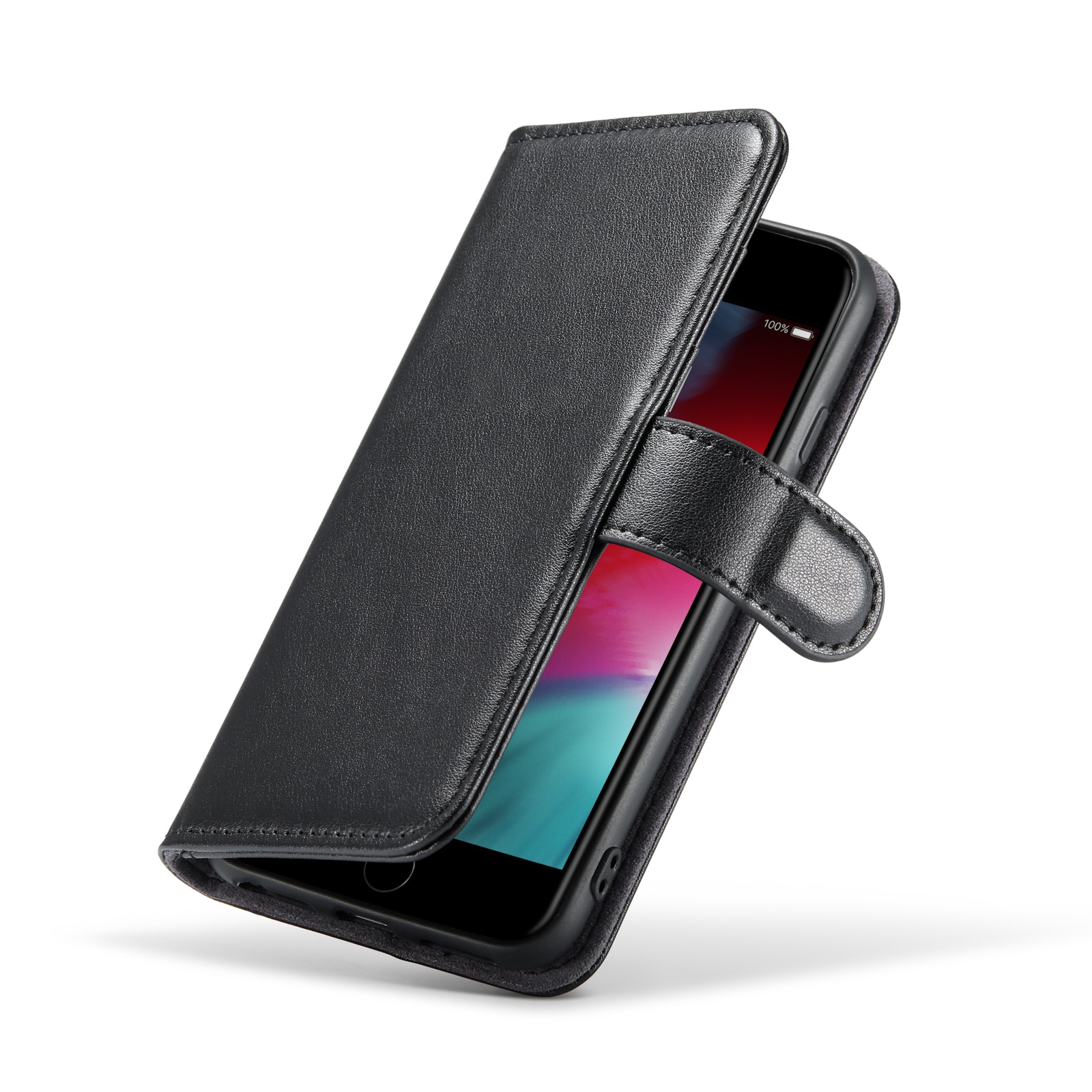 iPhone SE 2022 Lommeboketui i ekte skinn, Svart