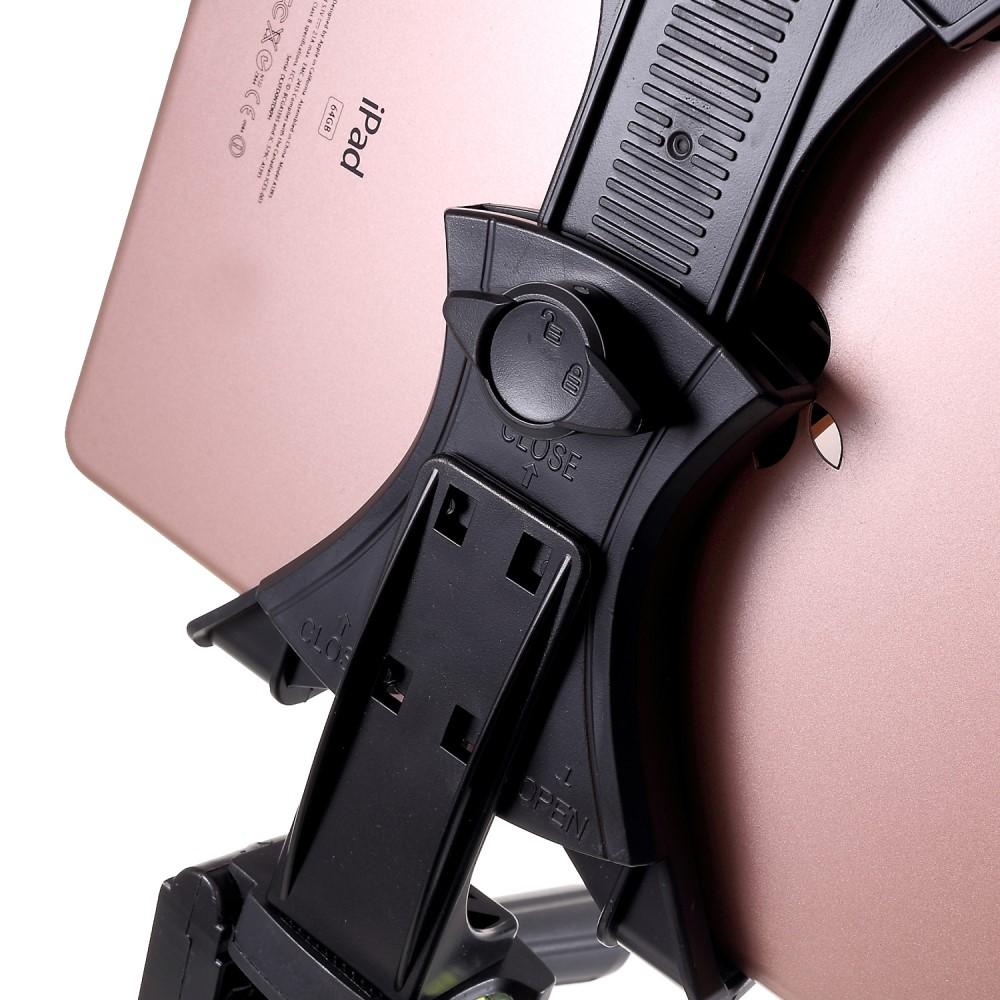 Ikke flere usikre vinkler eller ustødige bilder, for dette stativet har et innebygd vater! Med det kan du være helt sikker på at nettbrettet er i perfekt posisjon hver gang, enten du tar kunstneriske bilder eller har viktige videomøter.