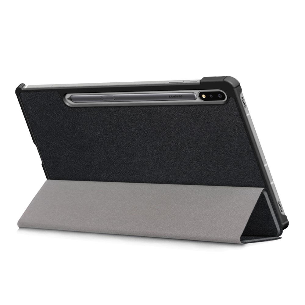 Det beskyttende etuiet for Samsung Galaxy Tab S7 FE er en ideell løsning for deg som vil holde nettbrettet ditt beskyttet uten å gå på kompromiss med funksjonalitet og design. Den slanke og lette designen sikrer at nettbrettet ditt forblir enkelt å bruke, selv med etuiet på. Det foldbare lokket gir ikke bare beskyttelse for skjermen, men fungerer også som et praktisk stativ, noe som gjør nettbrettet ditt allsidig for ulike bruksområder - enten du ser på film, leser eller jobber.